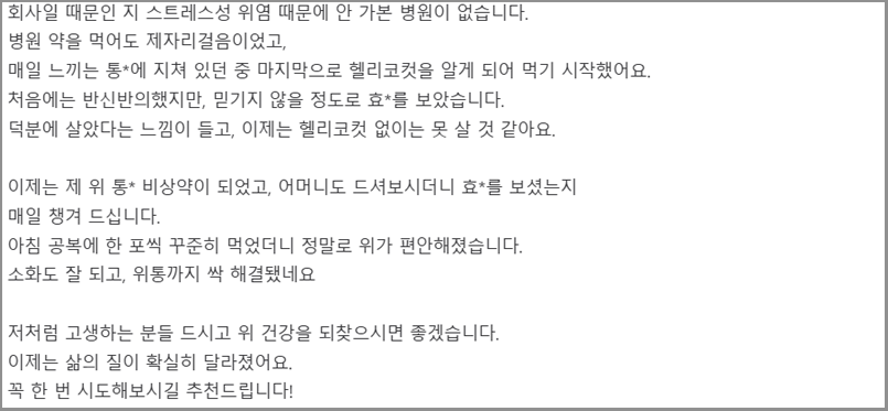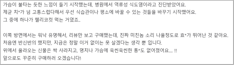 테라퓨젠 공식 홈페이지 기준 실제 구매 후기 중 일부를 발췌하였으니 참고하시길 바랍니다.