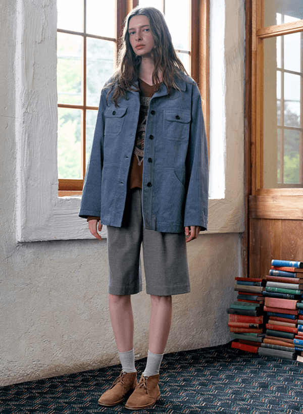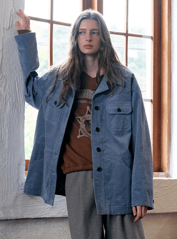 탄탄한 100% 코튼 소재의 코듀로이 원단을 사용해 형태감이 잘 잡히며, 오픈 카라 디자인이 세련된 분위기를 완성해 주는 자켓입니다.